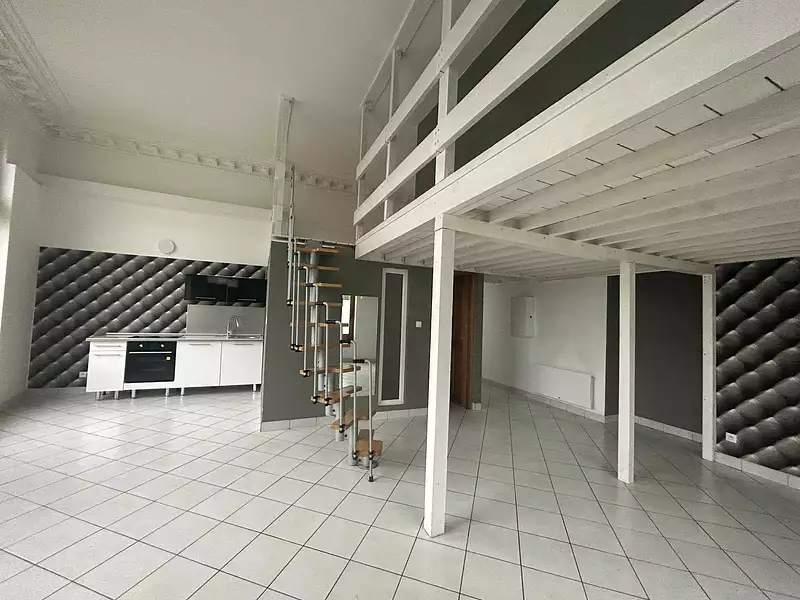 Appartement au rez-de-chaussée offrant un hall d'entrée, une cuisine équipée ouverte sur le salon, une salle de douche, wc. A l'étage : une chambre, un bureau. Une place de parking. DISPONIBLE DE SUITE ! Contact direct : 06x76x94x72x75