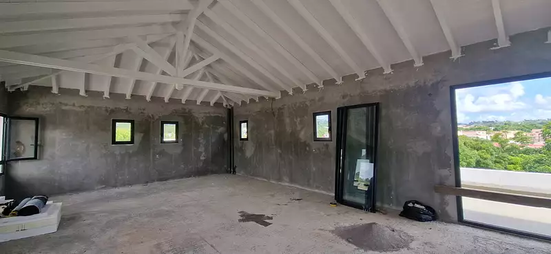 Surface livrée brute avec attentes fluides, belle hauteur sous charpente et terrasse privative