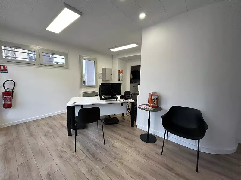 Local d'activité de 74m2 situé sur un axe passant, proximité rocade. Celui-ci est composé de 3 espaces bureaux entre 9m2 et 14m2, un coin cuisine et sanitaires.