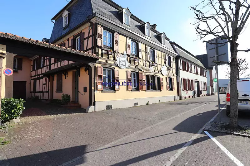 Emplacement n°1 . Brumath, idéal pour activité professionnelle ou commerciale, au rez de chaussée, d'une maison alsacienne, local de 83,50 M2 Carrez proposant 3 grands volumes de 17,50 M2 à 21 M2 (actuellement ouverts mais pouvant à nouveau être scindés), une cuisine, une salle d'eau et un WC indépendant. Toute activité possible sauf restauration. Loyer : 800,-€ + 25,-€ de charges (eau et poubelles)