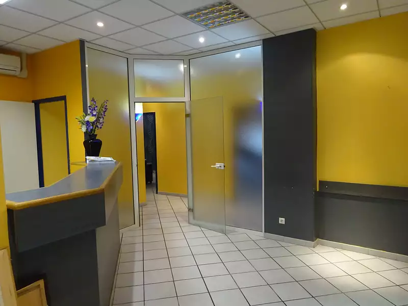 Alès, rue Mandajors, en rez-de-chaussée, local professionnel, comprenant : Pièce d'accueil secrétarait, bureau, trois salles indépendantes, cellier, toilettes. Climatisation. Dpe en cours.