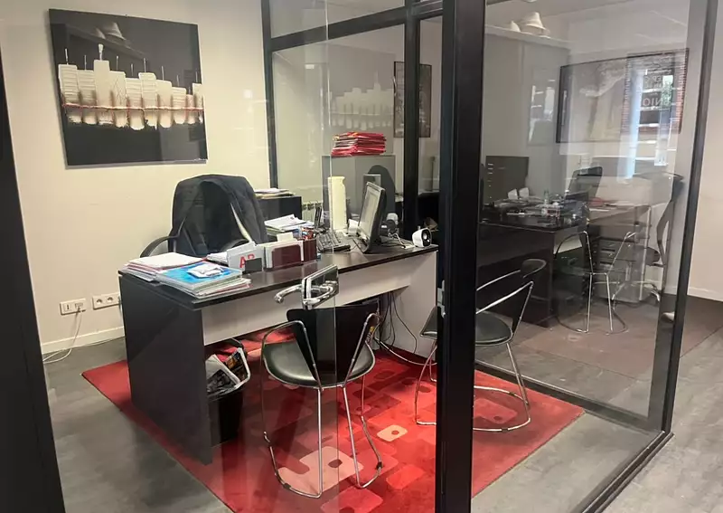 Local commercial en rdc comprenant 4 bureaux coté rue + 2 bureaux coté cour avec 1 cuisine équipée + 1 WC