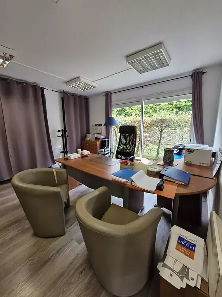 VANNES OUEST - Local commercial de 90 m² sur un AXE TRES PASSANT de VANNES - Double entrée - 60 m² env. de surface de vente, un grand bureau de 20 m², un espace kitchenette, une réserve et des sanitaires - 1 place de parking extérieure // loyer mensuel : 1 701,20 € HT - honoraire agence à la charge du Preneur : 4 896 € HT soit 5 875,20 € TTC