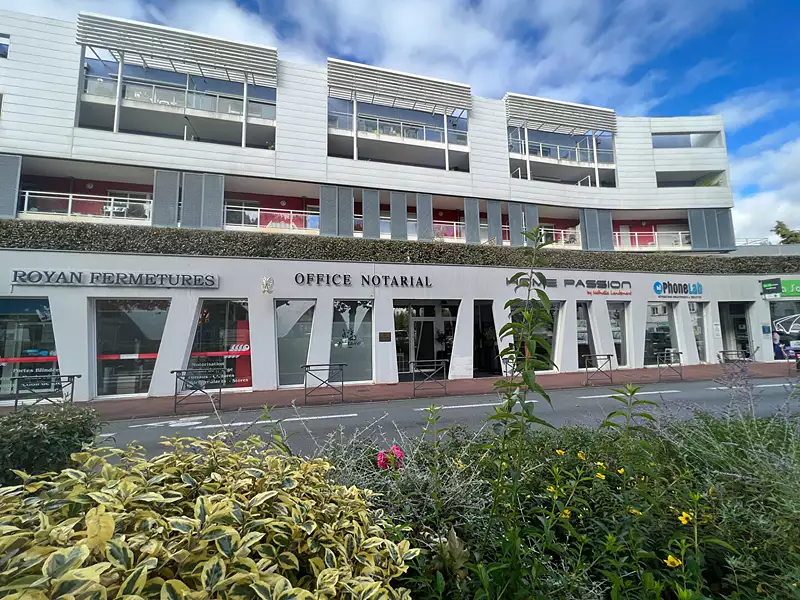 ROYAN - Local commercial de 96 m² avec vitrine, résidence Montmartre, face au Marché Central. En très bon état (année 2012). Très bonne visibilité, sur un axe incontournable de ROYAN. Composé de 3/4 bureaux séparés par des cloisons vitrées ( possibilité d'aménager différemment) , accueil, réserve et sanitaire. Parking public dans le sous-sol de l'immeuble et en face de la résidence. Normes PMR. - Bail professionnel (6 ans) : Loyer mensuel : 1900 EUR HT 2 mois de caution ou - Bail commercial (3/6/9 ans) : Loyer mensuel : 1900 EUR HT Droit d'entrée : 25 000 euros