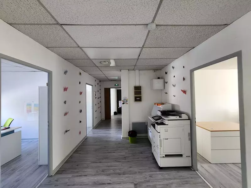Situés au 1er étage, ces bureaux composés de 6 pièces spacieuses offrent un cadre de travail agréable. Leur luminosité et leur agencement optimal permettent de répondre aux besoins de nombreuses professions, notamment : professions libérales, médicales, paramédicales, start-ups, organismes de formation ou associations.