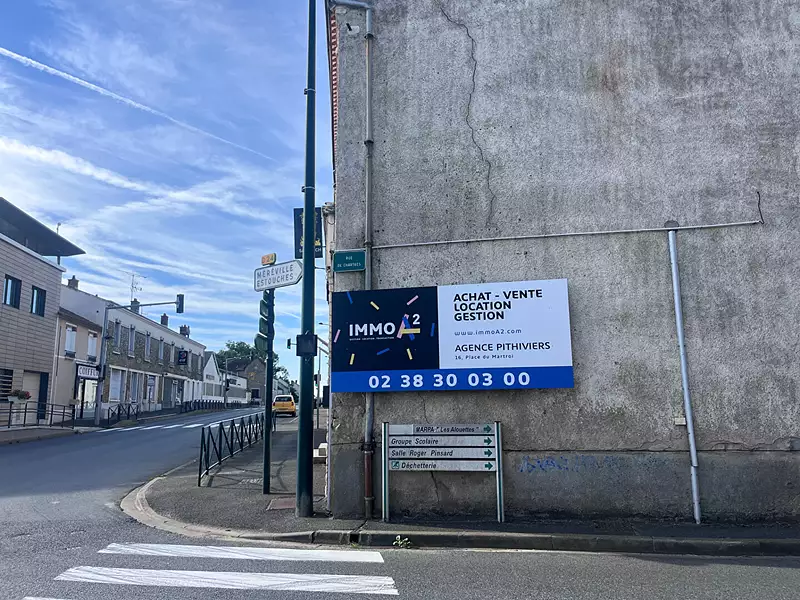 Emplacement publicitaire à louer. A Sermaises, sur l'axe Pithiviers - Etampes, face à la mairie, emplacement pour panneau publicitaire sur immeuble. Loyer annuel : 400.00 euros/an.
