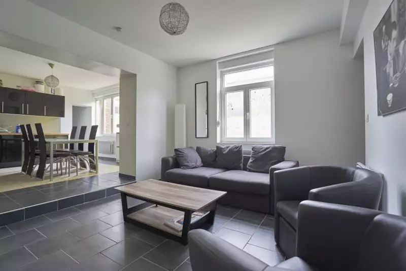 Une maison spacieuse et chaleureuse pour 5 colocataires Rez-de-chaussée : Grand séjour confortable et aménagé Cuisine entièrement équipée (frigo, plaques, four, micro-ondes, machine à café...) Cour extérieure pour profiter des beaux jours