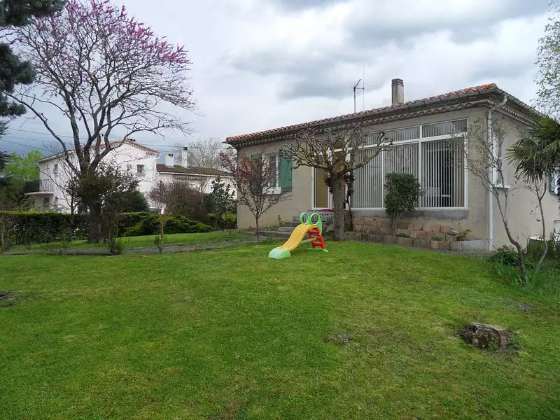 Un grand jardin arboré et clos complète les prestation de cette villa située proche du Lycée.