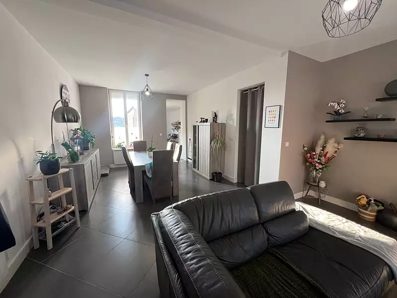 Maison semi individuelle en parfait état comprenant salon, salle à manger, cuisine semi-équipée, cellier et wc en RDC. Au 1er étage, 2 chambres et salle de bains avec wc. Au 2ème étage 1 chambre avec coin dressing et douche. Cave, remise, terrasse et terrain. Disponible au 19/10/2025