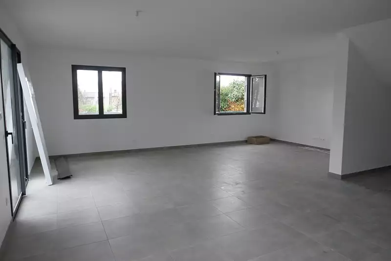 Maison individuelle sur deux niveaux comprenant : entrée avec placard, grand séjour/salon donnant sur terrasse exposée plein sud, cuisine équipée (plaque de cuisson et hotte) salle d'eau avc wc, un garage attenant. A l'étage : un palier desservant 4 chambres avec placard, salle de ains et wc séparé. Loyer 1880.00 €, chauffage par pompe à chaleur, disponible le 22 décembre 2025.