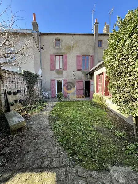 Maison de ville comprenant une entrée, une grande pièce de vie, une cuisine aménagée, suite parentale. A l'étage palier, dressing, 2 chambres, un bureau, salle de douche et WC. Grenier, cour avec préau