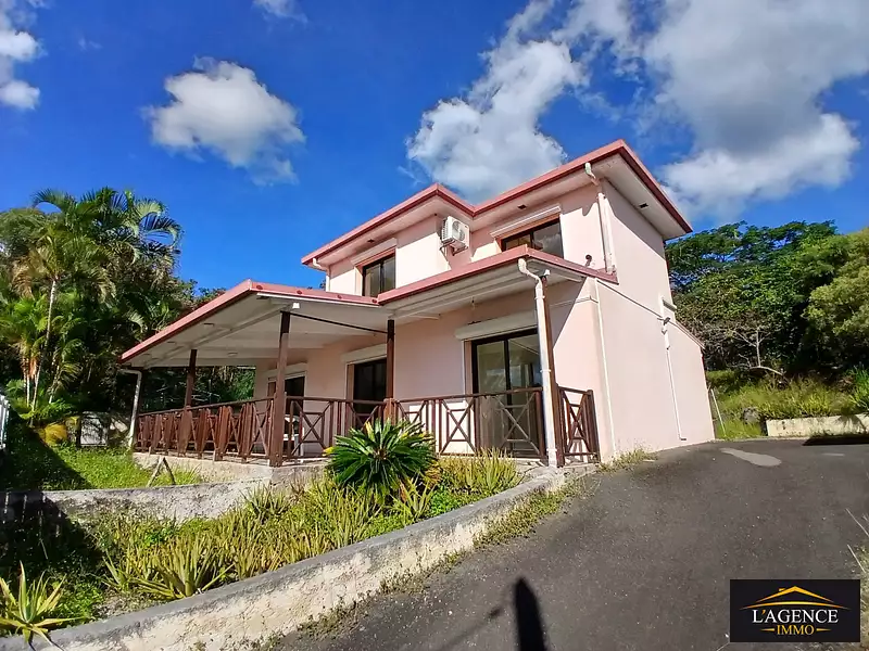 Villa F5 d'une superficie de 120m² composée d'une entrée, d'une cuisine équipée et aménagée, d'une grande buanderie, d'un WC indépendant, d'un lumineux séjour, d'une chambre climatisée et d'une grande terrasse couverte.