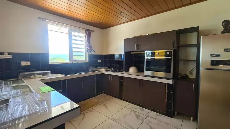 Haut de maison avec vue superbe, en dur, de 3 chambres, 2 salles d'eau, cuisine américaine, grand séjour, électricité solaire
