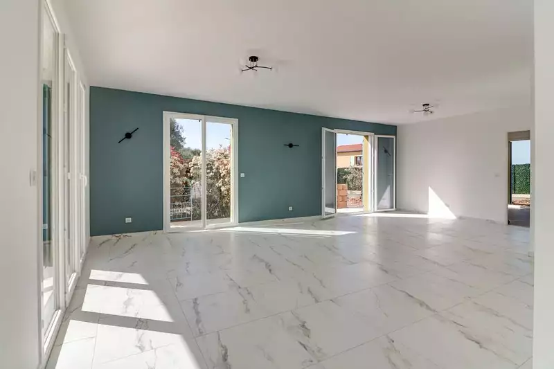 Splendide villa totalement rénovée de plain pied située dans le quartier résidentiel des Plateaux fleuris à Saint Laurent du Var, belle vue mer et sans vis-à-vis!