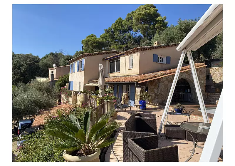 CARQUEIRANNE VUE MER : dans un domaine privé et sécurisé face à la mer, belle villa indépendante de 130m² louée MEUBLEE. Au RDC, accessible par un escalier: entrée, salon, salle à manger, cuisine, toilettes. A l'étage: 2 chambres, une chambre parentale avec bureau pouvant faire office de chambre enfant, salle de bain et toilettes. Vue mer de chaque pièce de la villa, 3 parking dans le jardin, piscine avec couverture de sécurité, cuisine d'été, belles terrasses. Coin potager et terrain de pétanque. Alarme possible. Accès direct à la mer LIBRE le 10 DECEMBRE 2025. Loyer 3220 euros par mois charges comprises dont 220 euros de charges (entretien jardin, entretien piscine, parties communes). Régularisation annuelle des charges. Dépôt de garantie: 6000 euros.Honoraires charge locataire: 1697.67 euros dont 391.77 euros pour l'état des lieux. AGENCE GUICHARD IMMOBILIER ON / OFF MARKET . VENTE - LOCATION - GESTION LOCATIVE . ESTIMATION OFFERTE . 119 avenue de la première DFL 83220 LE PRADET . Tél : 04 94 00 31 00 . Mail :