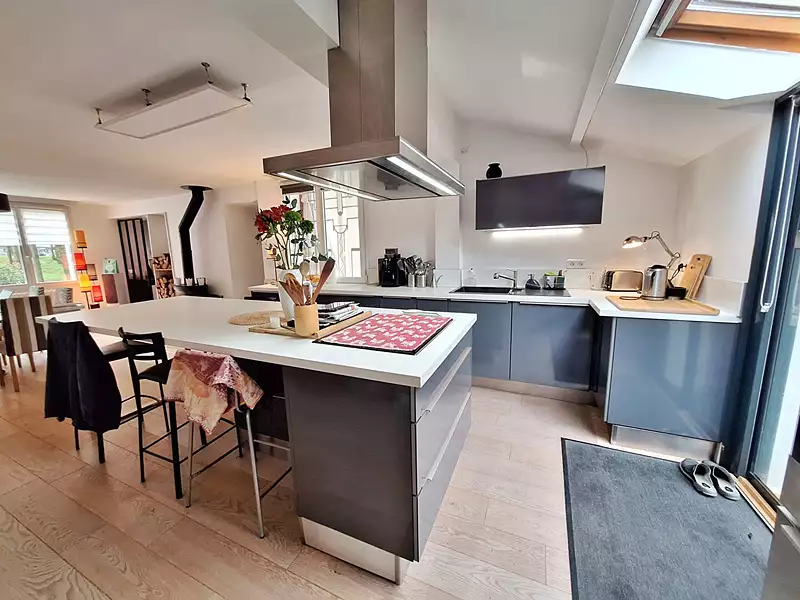 Kermarrec Habitation vous propose cette belle maison meublée comprenant: Une entrée, un salon/séjour, une cuisine ouverte aménagée et équipée, une arrière cuisine, une suite parentale avec salle d'eau, 2 chambres, un bureau. Garage double, une cour et un jardin clos. Disponible de suite Loyer HC : 1750 euros Charges mensuelles : 70 euros (eau, entretien de l'espace vert ) Dépôt de garantie: 3 500.00 euros