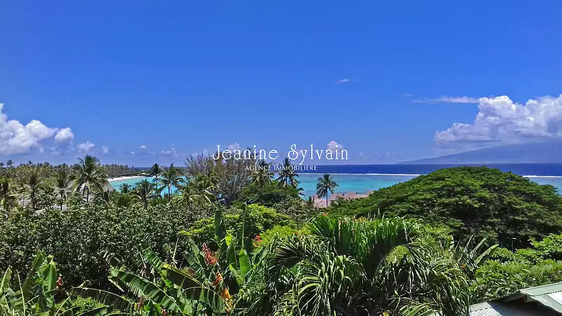 Moorea, maison de standing dans un quartier résidentiel sécurisé avec une très belle vue sur le lagon et Tahiti, et proximité d'une plage de sable blanc.