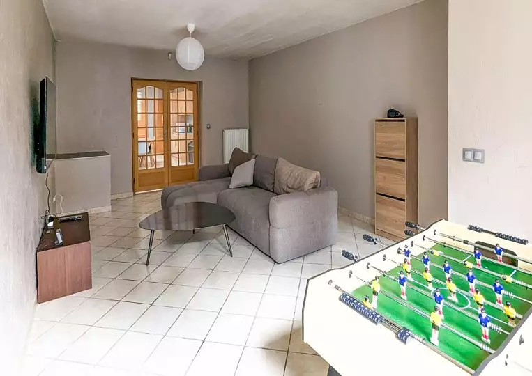 Profitez de grands espaces communs avec une entrée, une cuisine totalement équipée et un séjour de 55m² avec baby-foot. Deux grandes salles de bain , et deux toilettes séparées.