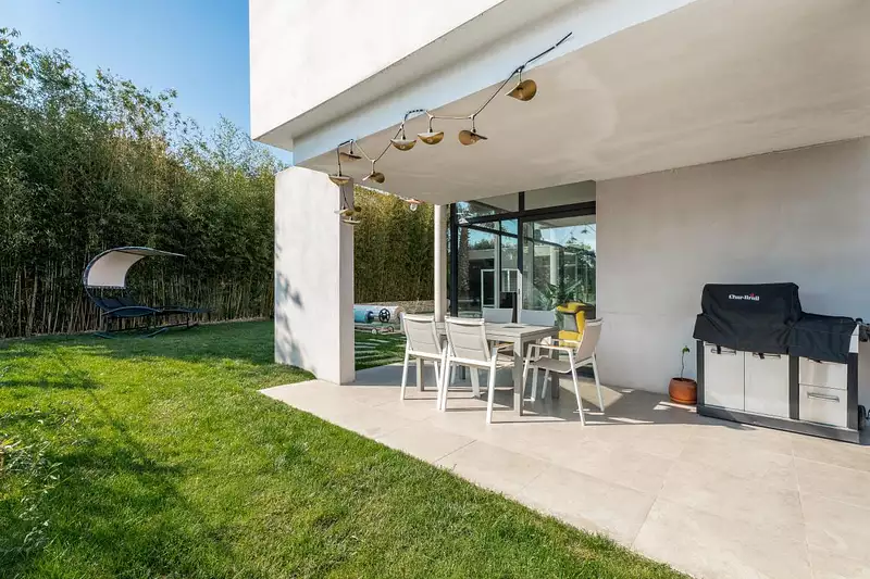 À louer, belle villa contemporaine meublée de 164 m² (construction 2011), climatisée, sur un terrain paysagé de 700 m² avec piscine. Elle comprend 4 chambres (dont 2 suites parentales avec douche et wc), une salle de bain, un bureau, une buanderie, une cuisine ouverte sur un séjour lumineux, un garage. DISPONIBLE AU 01/01/2026
