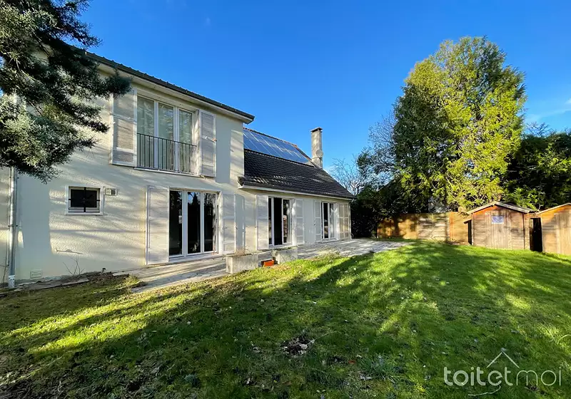 VISITE VIRTUELLE disponible : cliquez sur le lien ! Les agences TOIT ET MOI vous présentent cette maison familiale, située au calme, en bordure de la forêt domaniale. Vous apprécierez également sa luminosité et ses volumes. Elle comprend en rez-de-chaussée une entrée avec placard, un séjour de 50m² avec cheminée, une cuisine aménagée et équipée (lave-vaisselle, réfrigérateur, plaque de cuisson, four, hotte, micro-ondes), un bureau, des WC séparés, une buanderie et un garage. A l'étage, elle offre 4 chambres dont une suite parentale avec salle d'eau et WV, et une salle de bains avec WC. Les combles sont aménagés, pour une surface au sol de 48m² (non comprise dans la surface habitable) : idéal pour une salle de jeux ou du stockage. Maison reliée à la fibre. Vous disposerez enfin d'un agréable terrain de 743 m², bien exposé. Chauffage au gaz de ville. Ramassage scolaire et service de trottinettes électriques dans la résidence. Disponible le 2 janvier 2026.