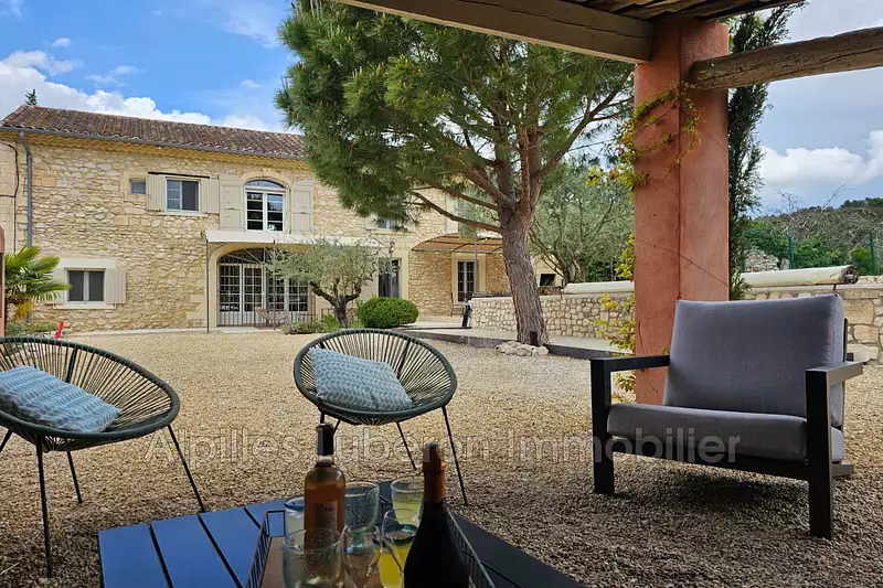 À quelques kilomètres d'Eygalières, en campagne d'Orgon, village provençal entre Alpilles et Luberon, se trouve ce mas de 200 m² à la décoration cosy qui accueillera généreusement les familles ou les amis ! Au rez-de-chaussée, une grande salle à manger avec cuisine américaine superbement équipée (notamment une cuisinière Lacanche), un séjour avec 2 grands canapés moelleux, une banquette avec coussins et TV grand écran, 1 salle d'eau (vasque en pierre, douche à l'italienne, WC séparé, lave-linge), une chambre parentale (lit de 160 cm) avec une chambre d'enfants attenante (lits tiroirs de 90 cm). À l'étage, un grand palier distribue un autre salon avec canapé, billard, table d'échec, petite TV, une chambre (lit de 160 cm) avec salle d'eau privative (douche à l'italienne, plan vasque double, WC), les deux autres chambres de l'étage (l'une avec lit de 160 cm et l'autre avec 2 lits de 90 cm ou 1 lit de 180 cm) se partageant la salle d'eau familiale (douche à l'italienne, plan vasque double, WC). Devant le mas, 2 terrasses ombragées par pergola, l'une avec salon d'extérieur, l'autre avec une table pour les repas et une grande plancha pour les grillades. Terrain clôturé de 1000 m² avec une terrasse couverte abritant un autre salon d'extérieur, une remise avec un second réfrigérateur, 1 table de ping-pong, des fauteuils supplémentaires, un garage pour les voitures ou motos, et une belle piscine chauffée de 10 x 5 m sécurisée par alarme immergée avec une plage pataugeoire pour les plus petits et des chaises longues pour paresser confortablement.