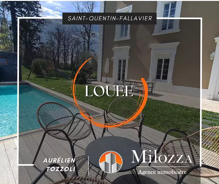Milozza vous propose en exclusivité cet appartement/maison duplex haussmannien d'exception de 200 m² avec jardin privatif de 500 m² et une piscine privative, située dans un secteur calme et verdoyant de Saint-Quentin-Fallavier, à proximité des écoles, commerces et axes rapides. Rez-de-chaussée: Hall d'entrée lumineux Salon de 30 m² Séjour de 32,55 m² Cuisine équipée de 36 m² Buanderie WC indépendant Étage: 4 chambres spacieuses Suite parentale de 32 m² (dressing + salle de bain privative) Salle de bain supplémentaire WC séparé Extérieurs et prestations Jardin privatif de 500 m² Piscine chauffée (pompe à chaleur air/eau) Chauffage maison par pompe à chaleur Grande cave Portail motorisé et stationnements privatifs Environnement calme et indépendant Conditions locatives: Loyer : 1 600 euros / mois HC Dépôt de garantie : 1 mois de loyer HC Honoraires locataire (Bail habitation Loi 89) : 1 600 euros TTC État des lieux : 600 euros TTC Disponibilité : décembre 2025 Type de bail : Bail d'habitation (Loi 89) DPE : D GES : B Milozza | Agence immobilière 23 rue Centrale, Saint-Quentin-Fallavier 06 52 85 94 44 Informations sur les risques : georisques.gouv.fr Copropriété de 44 lots - dont 15 lots habitation. (Pas de procédure en cours). Charges annuelles : 1044 euros.