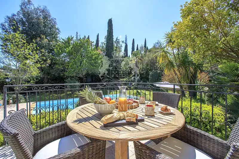 À proximité du pittoresque vieux village de Mougins, réputé pour ses nombreuses galeries et restaurants, situé à la fois dans un quartier très résidentiel à la lisière d'un parc national et à quelques pas du Golf de Cannes- Mougins et à seulement quelques minutes de Cannes, cette très charmante et élégante villa offre lumière, espace et tranquillité. La villa a été entièrement restaurée et décoré avec goût dans un style moderne. Une terrasse ombragée avec barbecue aménagée en salle à manger d’été donne sur la piscine et sur un magnifique jardin méditerranéen paysagé. Ref 149