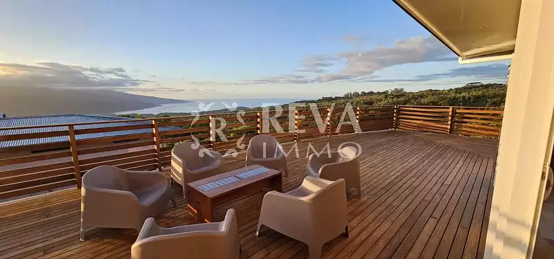 Ce logement avec piscine offre des prestations de standing et de très grands volumes bénéficie d'une vue panoramique sur la mer et le centre de Taravao.