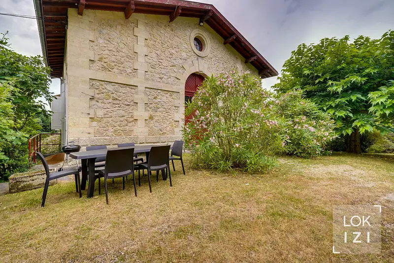 Sainte-Eulalie, aux portes de Bordeaux-Métropole, découvrez ce havre de paix à 10mn de gare Bordeaux-Saint-Jean (en TER) et de la zone d'activités de Bordeaux-Lac. Nous vous proposons en exclusivité cette charmante et spacieuse maison meublée 7 pièces de 277m2 (de plain-pied), avec cave et entourée d'un vaste jardin arboré verdoyant. Ancien chais transformé en habitation, la maison récemment rénovée offre un cadre de vie confortable idéal pour famille / télétravail et comprend : - hall d'entrée avec dégagement - grand séjour de 80m2 orienté sud avec cheminée (fonctionnelle), espace salon et espace repas - grande cuisine séparée entièrement équipée avec espace repas et prolongée d'un cellier-buanderie (avec accès cave) - 6 chambres avec placard / mobilier de rangement et kits d'accessoires literie, dont 1 grande chambre de 26m2 avec bureau et salle de bains privative (baignoire + WC) - 2 salles de bains / d'eau (dont 1 avec WC) - 1 WC séparé - vaste cave en sous-sol.