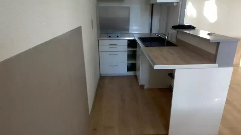 Léognan secteur Loustalade logement type 1 bis comprenant séjour avec coin cuisine équipé (placards, plaque et hotte), bureau de 8 m², salle d'eau et wc