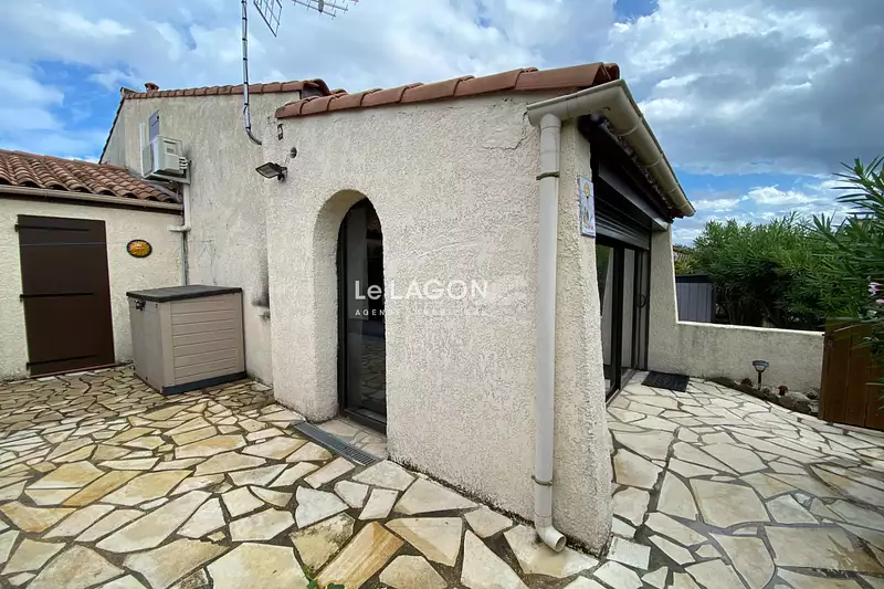 Maison MEUBLÉE, en parfait état, exposée OUEST de 53,67 m2 (S.U.) comprenant au rez-de-chaussée une entrée par une véranda sur un salon-séjour, avec un coin cuisine équipée, une chambre avec lit double, une salle d'eau avec WC.