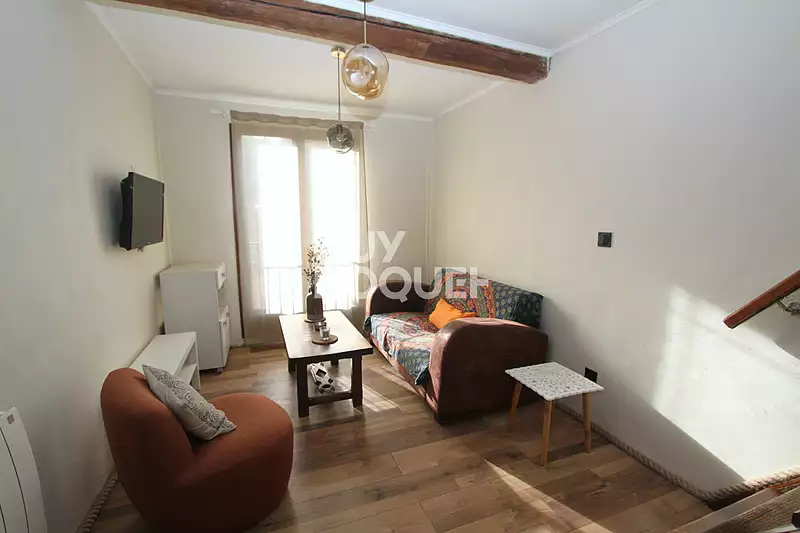 Superbe Maison de village meublée de 43.50 m² à louer à l'année. Maison de village sur 3 niveaux, en RDC une entrée avec une buanderie et une salle d'eau. Au 1er étage, on y retrouve une cuisine ouverte sur le séjour ainsi qu'une petite cours. Le 2 -ème étage se compose d'une chambre avec un WC.