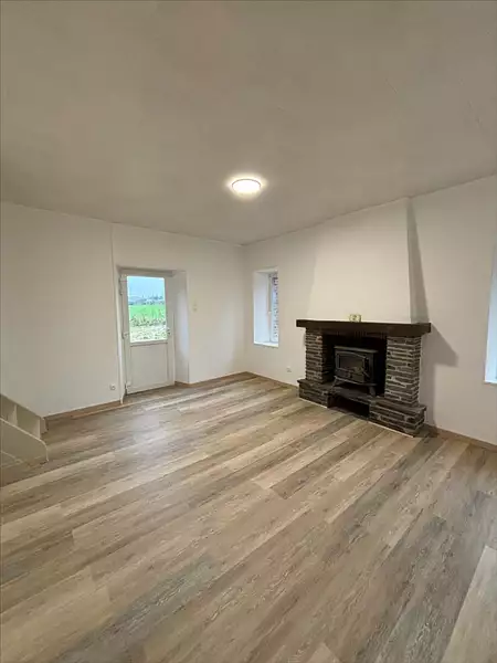 Très charmante petite maison comprenant : entrée dans salle/salon avec insert bois, cuisine, salle d'eau.Etage : deux chambres, WC.Garage.Cour et jardin.