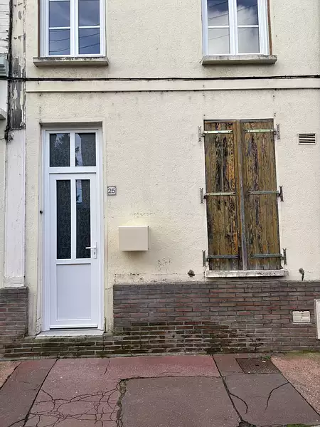 A louer Maison ABBEVILLOISE comprenant : 1 séjour/salon, 1 coin cuisine, au 1er étage: 1 chambre, 1 salle d'eau avec wc, au 2ème étage: 1 chambre, chauffage au gaz