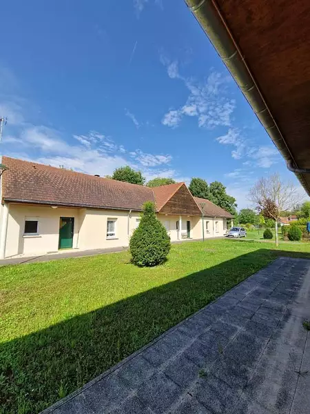 Le logement dispose d'une cuisine fermée, un salon séjour lumineux donnant sur le jardin , une chambre avec placard et une salle de douche PMR.