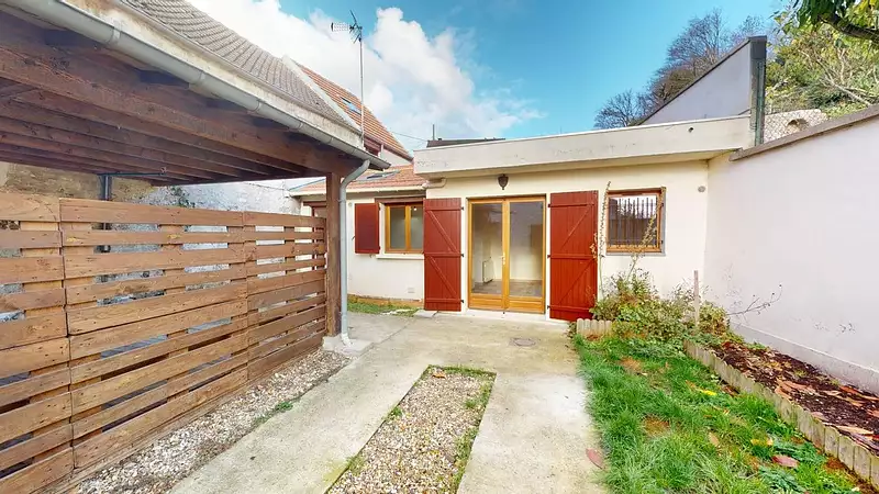 Une maison de type 3 pièces comprenant : - Au rez-de-chaussée : entrée, séjour, cuisine, salle de de bains et WC - Au premier étage : une chambre. - Au deuxième étage: Un bureau spacieux ou une seconde chambre.