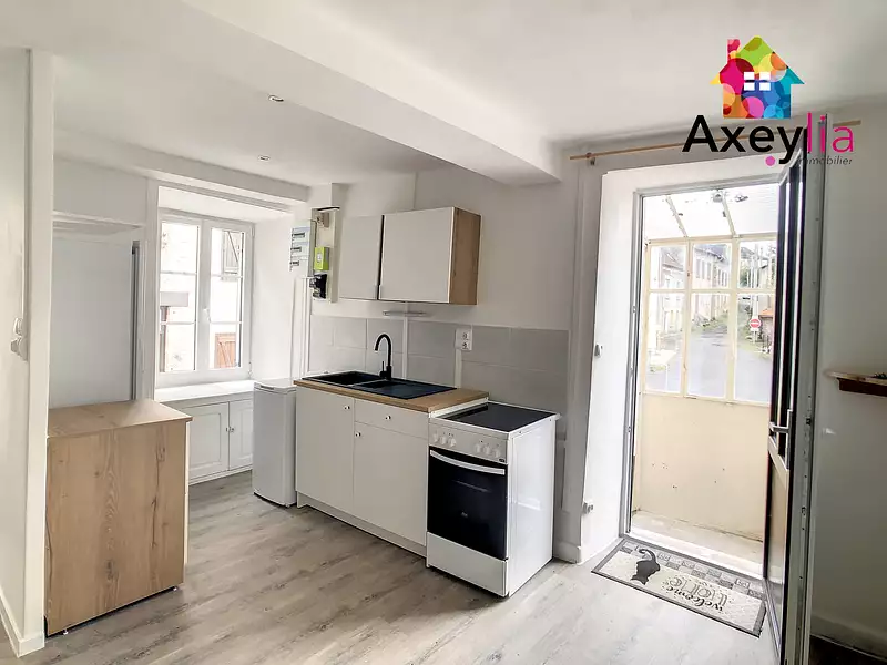 Maison de ville élevée sur cave, entièrement rénovée, en duplex, de 60,03 m2 comprenant une entrée avec veranda, une cuisine équipée, un séjour, un WC, à l'étage : un palier distribuant deux grandes chambres, une salle de bains-WC. Au niveau supérieur : un vaste grenier. Chauffage electrique (calo-porteurs) Emplacements de parkings devant la maison. Proche des commodités du village.