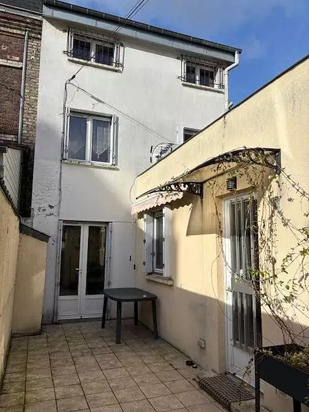 Rouen, rue de Bammeville. Une maison de ville comprenant au rez-de-chaussée un séjour, cuisine, salle de douche avec WC. Deux chambres à l'étage. Une cour. Un grand garage.
