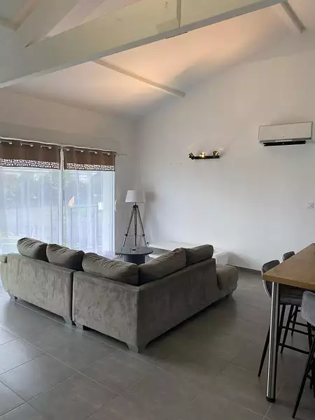 Aux portes de Dax, dans quartier calme, coquette maison meublée mitoyenne d'un côté comprenant entrée, séjour avec cuisine ouverte équipée (lave vaisselle, four, micro-ondes, plaques, réfrigérateur congélateur, hotte, placards), deux chambres avec placards, salle d'eau, wc. Garage. Terrain clôturé d'environ 430 m2. Pompe à chaleur avec climatisation réversible. Taxe d'ordures ménagères et entretien pompe à chaleur inclus dans les charges. Disponible le 15 Décembre 2025.