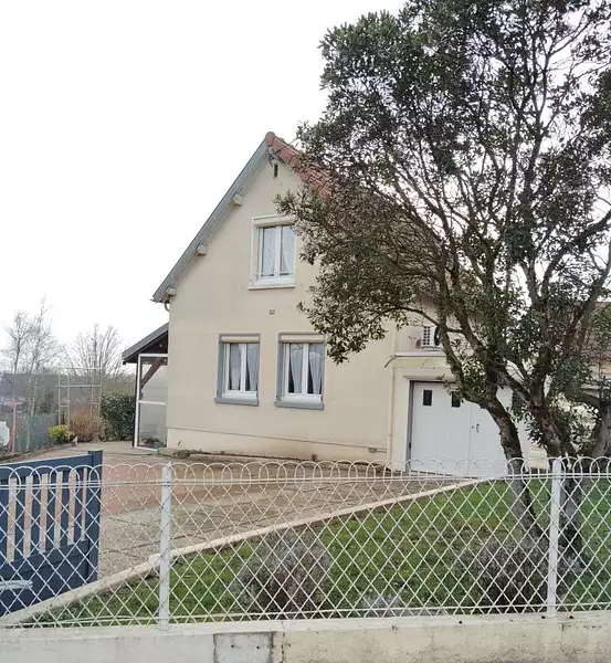 Le Creusot, coquette maison individuelle type T3 de 63.34 m² sur cave, offrant un WC séparé, une salle d'eau meublée avec douche, une cuisine équipée (four, plaque électrique, hotte) , un petit salon, un séjour, et à l'étage 2 chambres et un WC séparé.