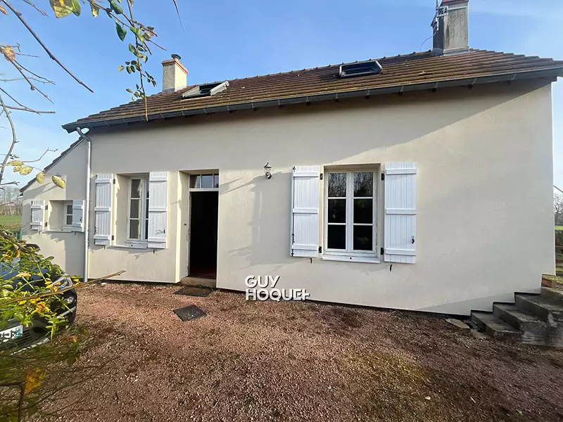Située en campagne, cette charmante maison offre un cadre de vie agréable. Elle est comprend au rez-de-chaussée : Une cuisine aménagée, un salon avec placard de rangement, une salle d'eau avec W.C. A l'étage : deux pièces pouvant faire office de chambre, une mezzanine, un WC avec lave-mains. Équipements et prestations : Isolation par l'extérieur, toiture et murs isolés Chauffage performant : poêle à bois, radiateurs, pompe à chaleur air/air et climatisation réversible. Puits, une remise. Proche des commerces, de la gare, des transports et des écoles,