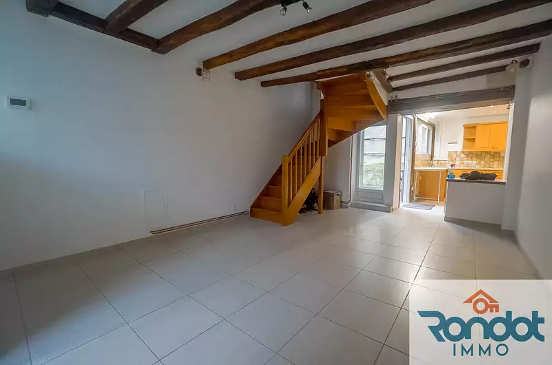 Le logement de 66 m2 habitable est répartie sur 3 niveaux. Au rez-de-chaussée : une entrée, une grande pièce à vivre de plus de 30 m2 (salon-séjour, une cuisine ouverte), et une cour intérieure avec un préau et une cave. Au 1er l’étage : une chambre avec placard intégré de 16 m2 environ et une salle d’eau avec wc. Au 2nd étage : une chambre avec placard intégré et une salle d’eau avec wc.