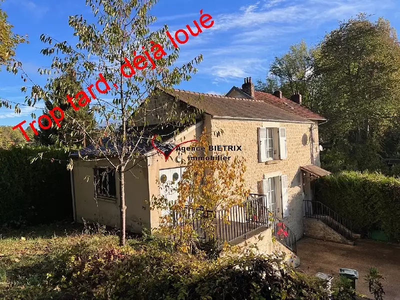 Nesles-la-Vallée: Trop tard déjà loué ! maison ancienne en pierre entièrement refait à neuf, lumineuse au calme comprenant: une entrée sur séjour avec coin cuisine aménagée, un wc, à l'étage un palier desservant 2 chambres avec placard, une salle d'eau, un wc, un grand cellier avec chaudière au gaz, grand jardin de 520 m² environ, possibilité de stationner 2 voitures.
