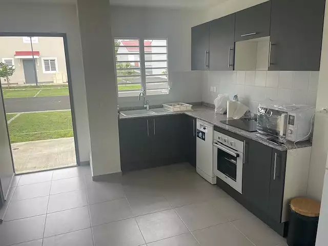 Villa mitoyenne F3 duplex NEUVE et meublée dans nouvelle résidence située à Perrin aux ABYMES, non loin du nouveau CHU. Ce logement lumineux et très ventilé comprend au rez de chaussée : 1 cuisine équipée et aménagée, 1 séjour, 1 buanderie et 1 jolie terrase avec jardin privatif ; et à l'étage : 2 chambres climatisées et 1 salle d'eau. La surface habitable totalise autour de 72m2. Pour ce qui est du loyer demandé, le coût est de 1 650 € mensuels. KEY IMMO se tient à votre disposition si vous souhaitez plus d'informations. Si vous êtes en quête d'un nouveau logement pour votre petite famille, contactez-nous pour venir voir ce domicile. Abonnement fibre compris dans le loyer.