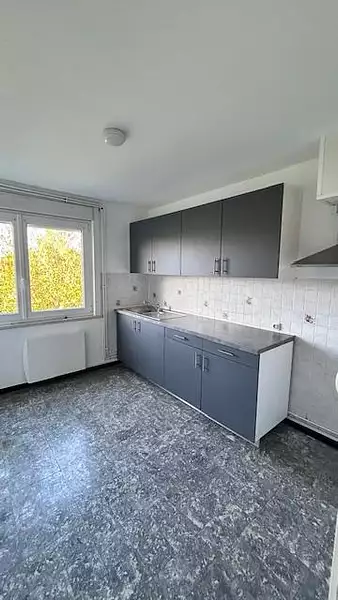Maison mitoyenne à louer, offrant : entrée, wc, cuisine meublée, séjour, salle de douche . A l'étage : palier desservant 1 bureau et 3 chambres.