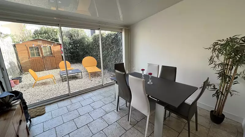 DISPONIBLE MI SEPTEMBRE MAISON DE VILLE DANS UNE RUE CALME, CUISINE EQUIPEE OUVERTE SUR LE SEJOUR , 2 CHAMBRES, SALLE D'EAU. VERANDA CLIMATISEE ET JARDIN SANS VIS A VIS. PROCHE DU CENTRE VILLE ET DES COMMERCES. A VOIR !