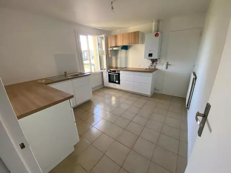 Maison T4 à louer sur la commune de Nieul-Sur-Mer avec une cuisine équipée neuve. Dans un quartier calme au sein d'une impasse. Une maison composée : d'une entrée, d'une cuisine équipée, d'un garage, d'un séjour de 21.65m², de 3 chambres, d'une terrasse, d'un WC séparé et d'une salle d'eau.