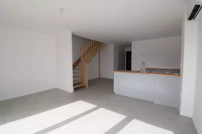 LESPINASSE dans un quartier calme à proximité de la sortie de l'autoroute, maison mitoyenne T4 récent assujetti au disposif PINEL. Menuiseries double vitrage, volets roulants électrique, chauffage avec pompe à chaleur au rez de chaussée, chauffage électrique à l'étage. Grand séjour avec cuisine ouverte et avec accès à une terrasse en bois, cellier, W.C sur les deux niveaux, escalier en bois menant à l'étage comprenant 3 chambres avec placards et une salle de bains.