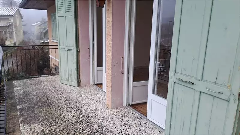 Maison individuelle comprenant au rez-de-chaussée un garage partagé, une terrasse très agréable l'été, un jardin et à l'étage : une cuisine indépendante, un salon donnant sur un balcon, 4 chambres, une salle d'eau, un wc indépendant. Réf. 26170.