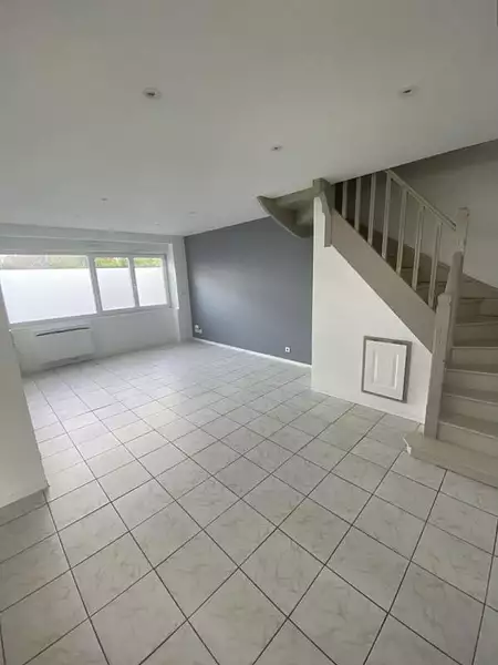 A LOUER A BRIVE MAISON DE TYPE F3bis de 83m² comprenant une entrée avec placard, un séjour lumineux, une cuisine aménagée et équipée ( plaque, four, hotte) et un patio. A l'étage, deux chambres, une salle de douche avec double vasque, et un toilette séparé. Au second étage, une grande mezzanine. En extérieur, une cours. PAS DE JARDIN NI DE GARAGE